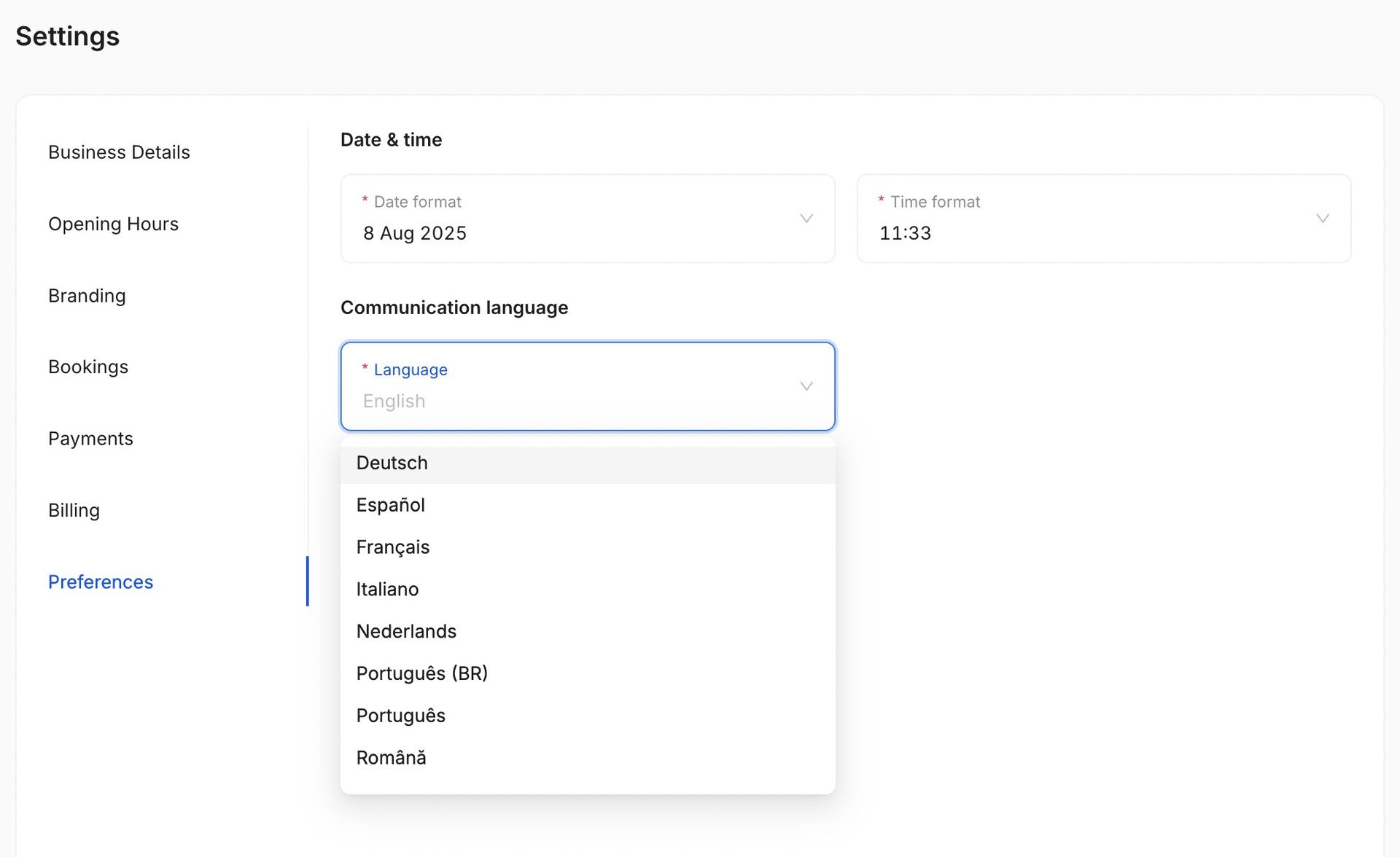Another great thing about using a salon appointment scheduler that also supports non-English speaking countries? Our system automatically detects the client's browser language and displays the booking interface to match. No additional settings or configuration required!